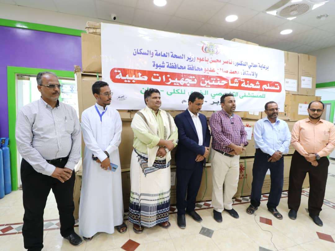 شبوة: تسليم أجهزة وتجهيزات طبية للمستشفى التخصصي الخيري للكلى عزان مصور