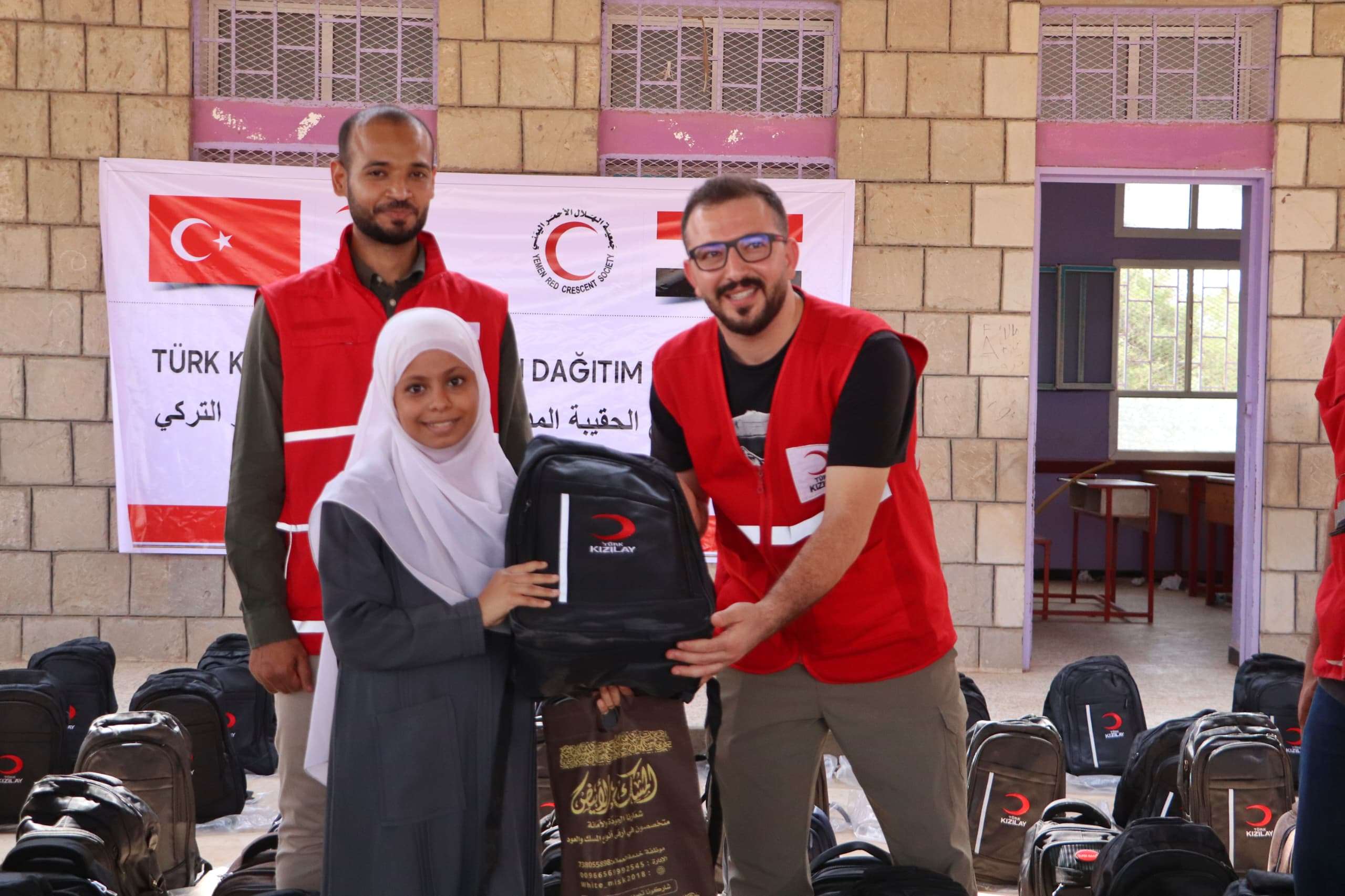 الهلال الأحمر التركي يدشن توزيع 1000 حقيبة مدرسية في محافظتي عدن ولحج