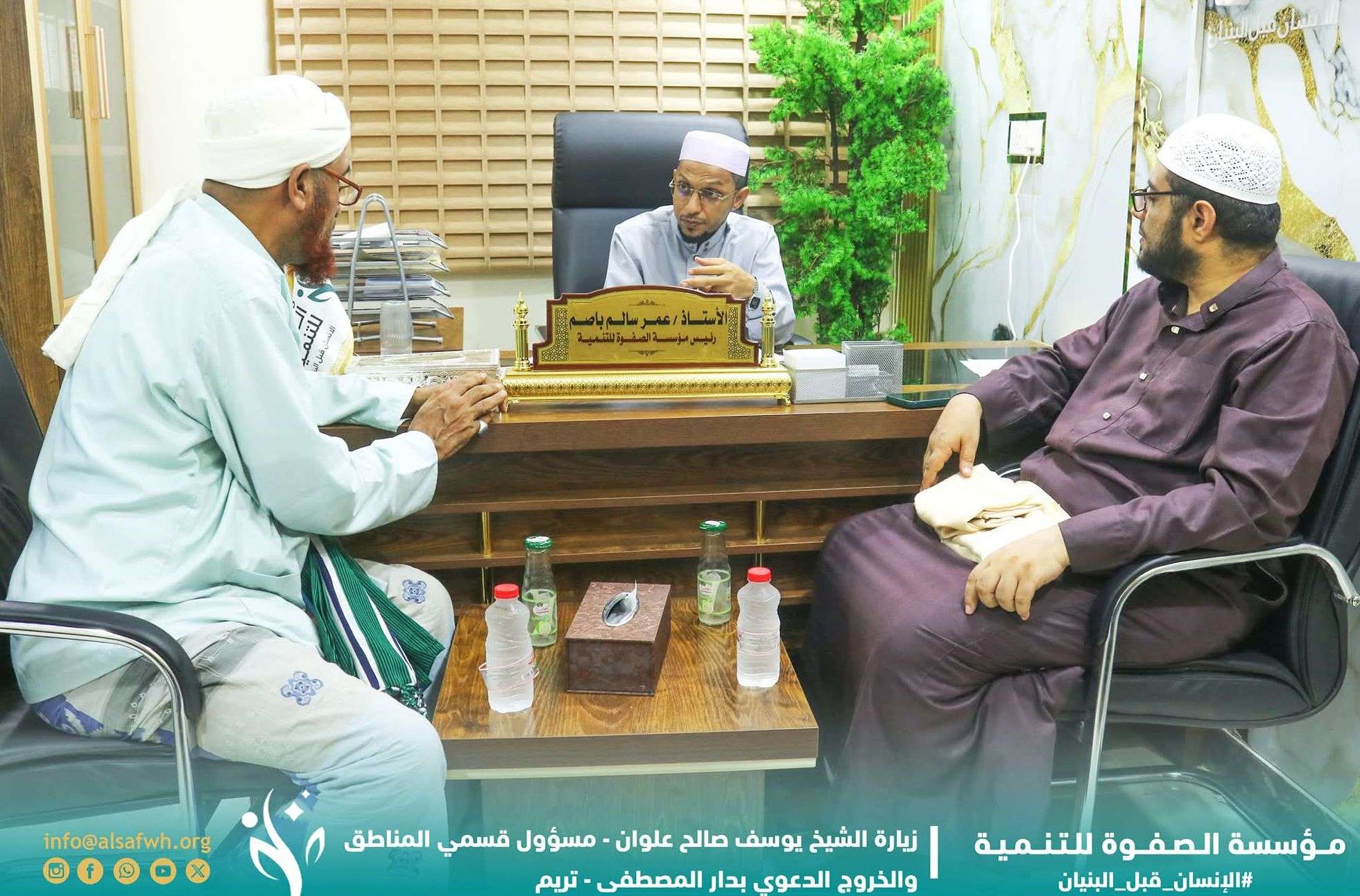 مسؤول بدار المصطفى للدراسات الإسلامية بتريم يزور مؤسسة الصفوة بالعاصمة عدن