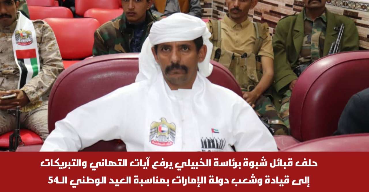 حلف قبائل شبوة برئاسة الخبيلي يرفع آيات التهاني والتبريكات إلى قيادة وشعب دولة الإمارات بمناسبة العيد الوطني الـ54