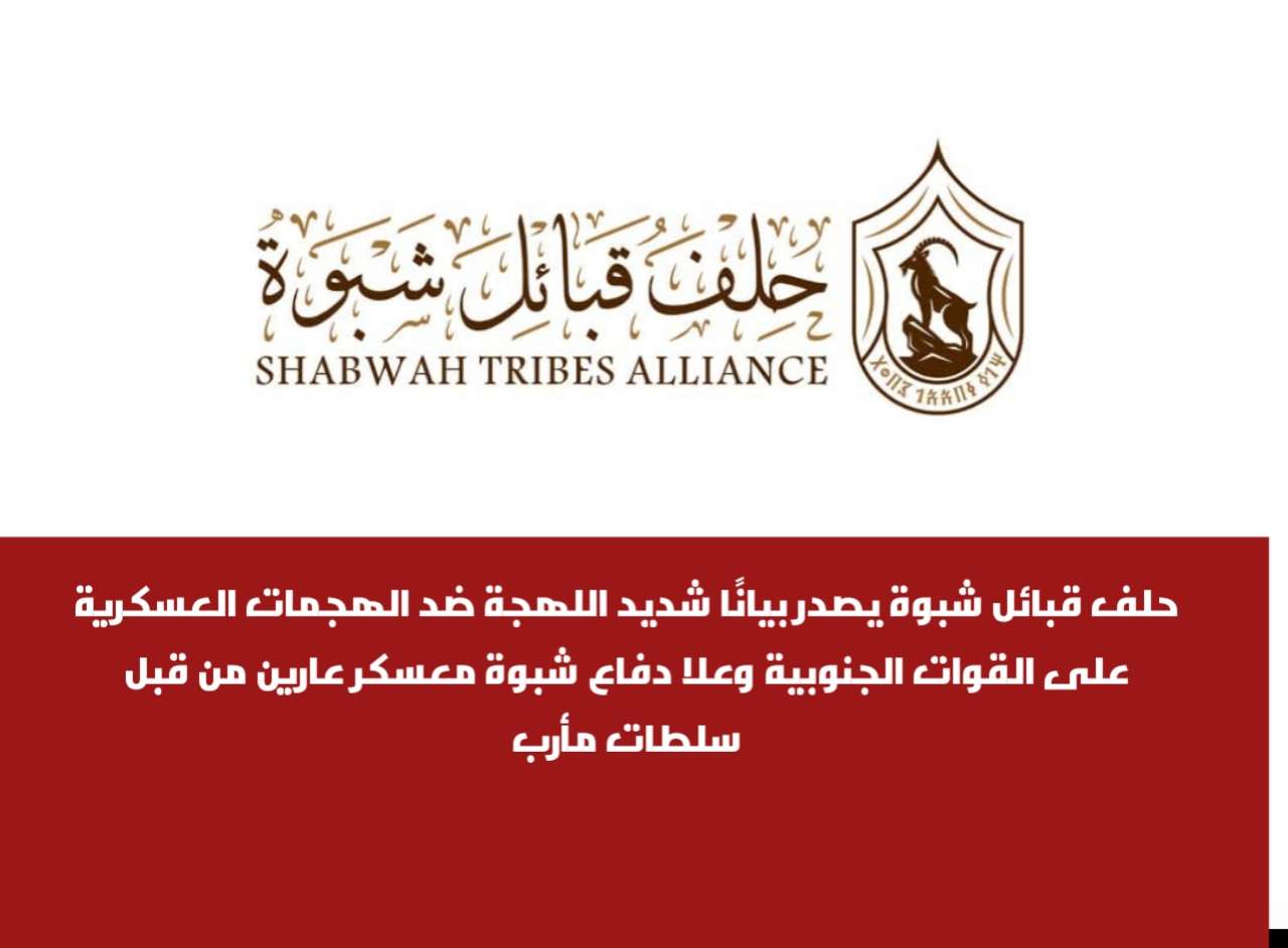 حلف قبائل شبوة يصدر بيانًا شديد اللهجة ضد الهجمات العسكرية على القوات الجنوبية وعلا دفاع شبوة معسكر عارين من قبل سلطات مأرب.