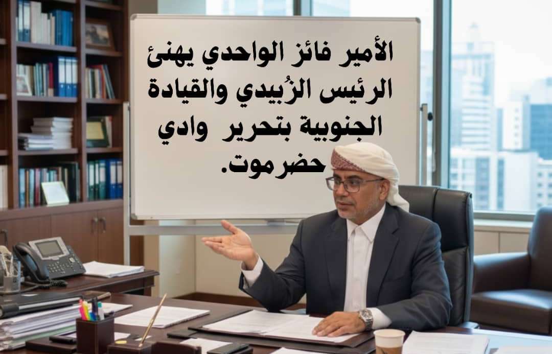 الأمير فايز الواحدي يهنئ الرئيس الزُبيدي والقيادة الجنوبية بتحرير وادي حضرموت
