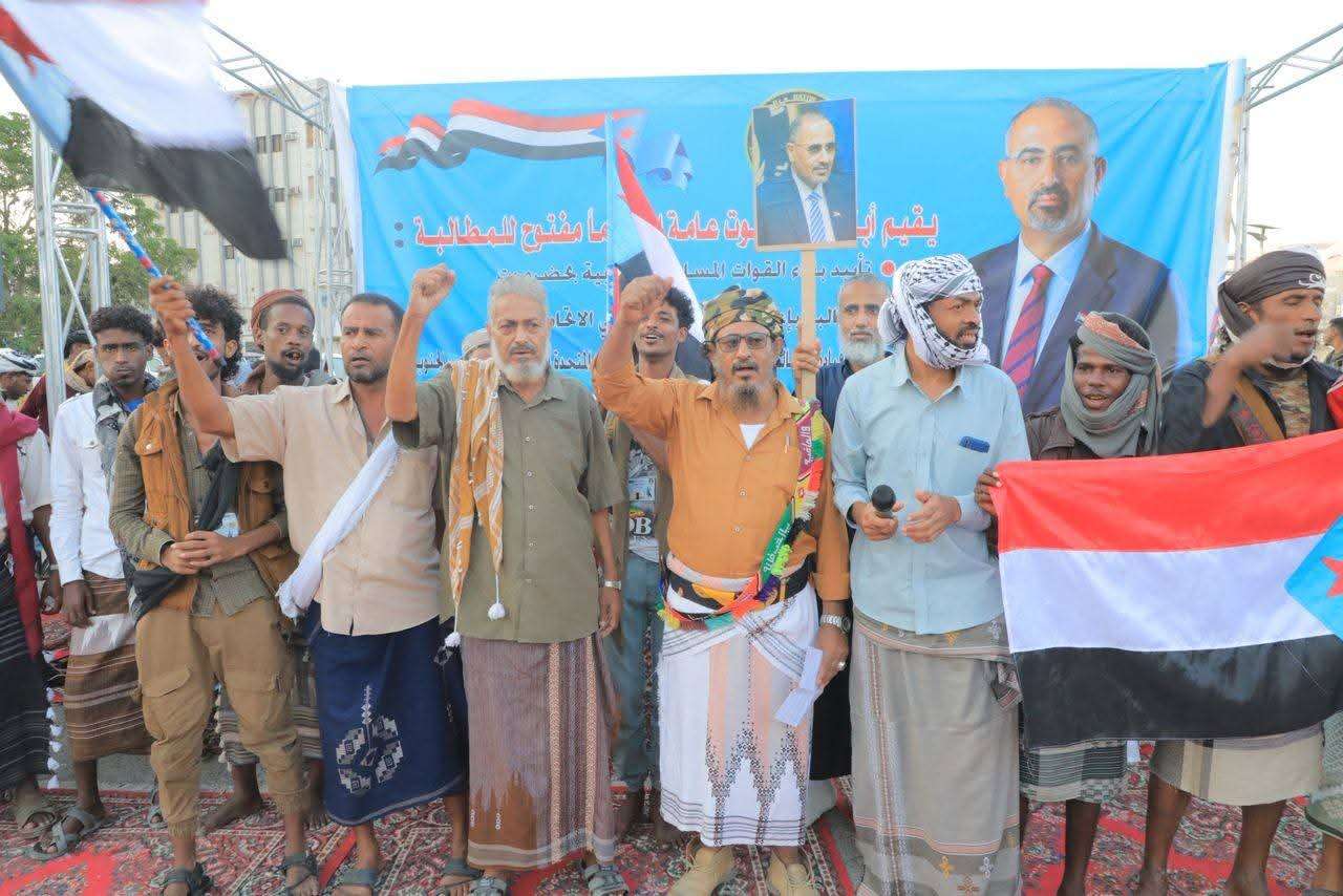 وفد من أبناء محافظة أبين المقيمين في المكلا يشارك المعتصمين بساحة القرار قرارنا بالمديرية