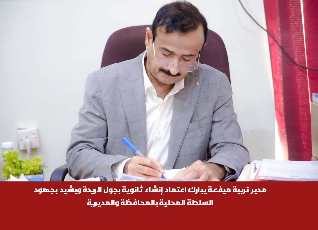 مدير تربية ميفعة يبارك اعتماد إنشاء ثانوية بجول الريدة ويشيد بجهود السلطة المحلية بالمحافظة والمديرية