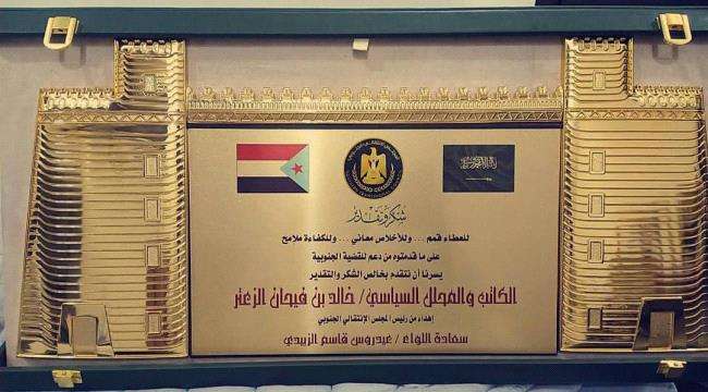 قام الرئيس القائد عيدروس الزبيدي رئيس المجلس الانتقالي الجنوبي اليوم الجمعة في مقر اقامته بالرياض في المملكة العربية السعودية بتكريم الكاتب والمحلل السياسي السعودي خالد الزعتر بشهادة تقدير. ويأتي التكريم نظير الدور الإعلامي والسياسي الكبير الذي يقدمه خالد الزعتر تجاه عدالة انصاف شعب الجنوب والقضية الجنوبية وتحقيق مشروع التحرير والاستقلال . وقال الزعتر في تغريدة على منصة تويتر :" تشرفت اليوم الجمعة بتكريمي من قبل رئيس المجلس الانتقالي الجنوبي عيدروس الزبيدي ، شكرا لأبناء الجنوب".