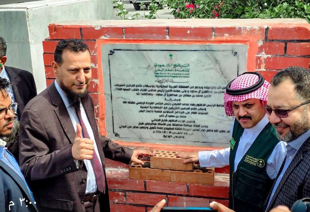 محافظ عدن ومدير البرنامج السعودي يضعان حجر الأساس للمرحلة الثالثة من مشروع تأهيل مطار عدن الدولي