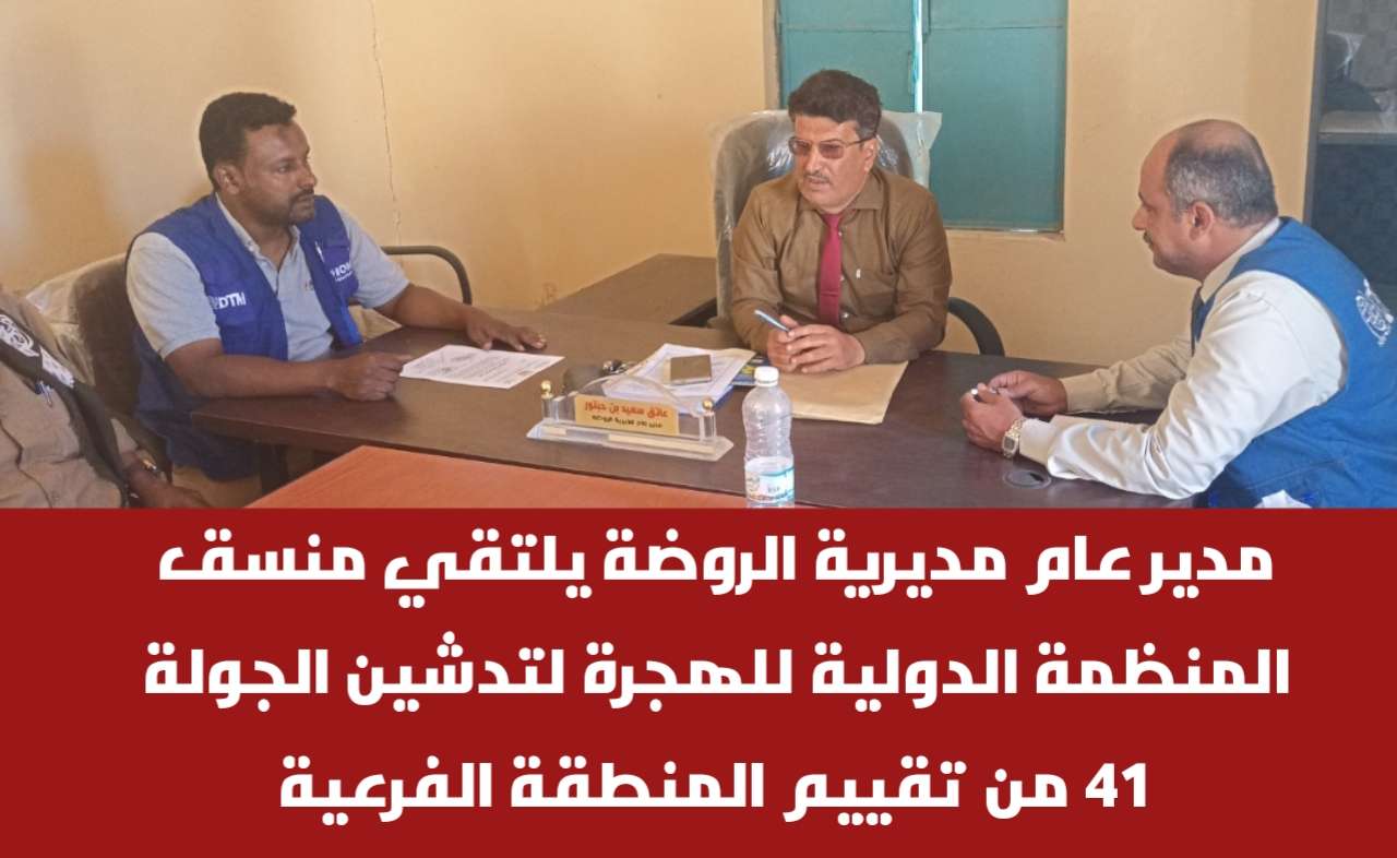 مدير عام مديرية الروضة يلتقي منسق المنظمة الدولية للهجرة لتدشين الجولة 41 من تقييم المنطقة الفرعية