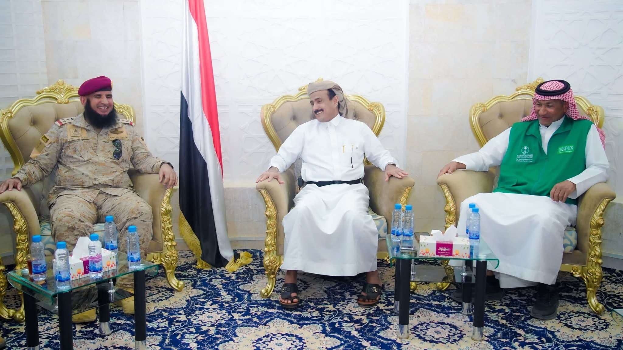 المحافظ بن الوزير يلتقي قائد قوات التحالف وفريق البرنامج السعودي ويشيد بدعم الأشقاء في المملكة.