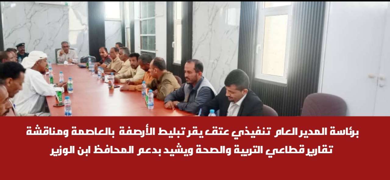 برئاسة المدير العام تنفيذي عتق يقر تبليط الأرصفة بالعاصمة ومناقشة تقارير قطاعي التربية والصحة ويشيد بدعم المحافظ ابن الوزير