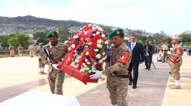 محافظ العاصمة عدن وقيادات المجلس الانتقالي تضع إكليلا من الزهور على ضريح الشهيد الجنوبي