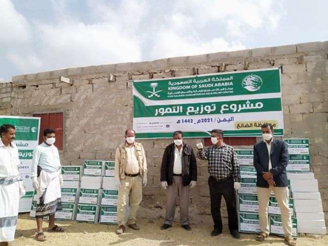 استمرارا للعطاء المتواصل والدورالانساني والاغاثي الرائد لمركز الملك سلمان للإغاثة والاعمال الإنسانية دشن صباح اليوم الاثنين 30 نوفمبر الاستاذ نبيل العفيف وكيل أول محافظة الضالع والعقيد احمدناجي المريسي مدير عام قعطبة والدكتور عبدالله الصيادي مديرشبكة النماء اليمنية بالضالع توزيع التمور للاسر المتضررة بمحافظة الضالع بالتعاون مع الشريك المنفذ شبكة النماء اليمنية للمنظمات الأهلية توزيع 5000 طن من التمور للمحافظات المحررةوالتي كان نصيب الضالع منها 31250 كرتون عبر عدة مراحل خلال عام 2021م.