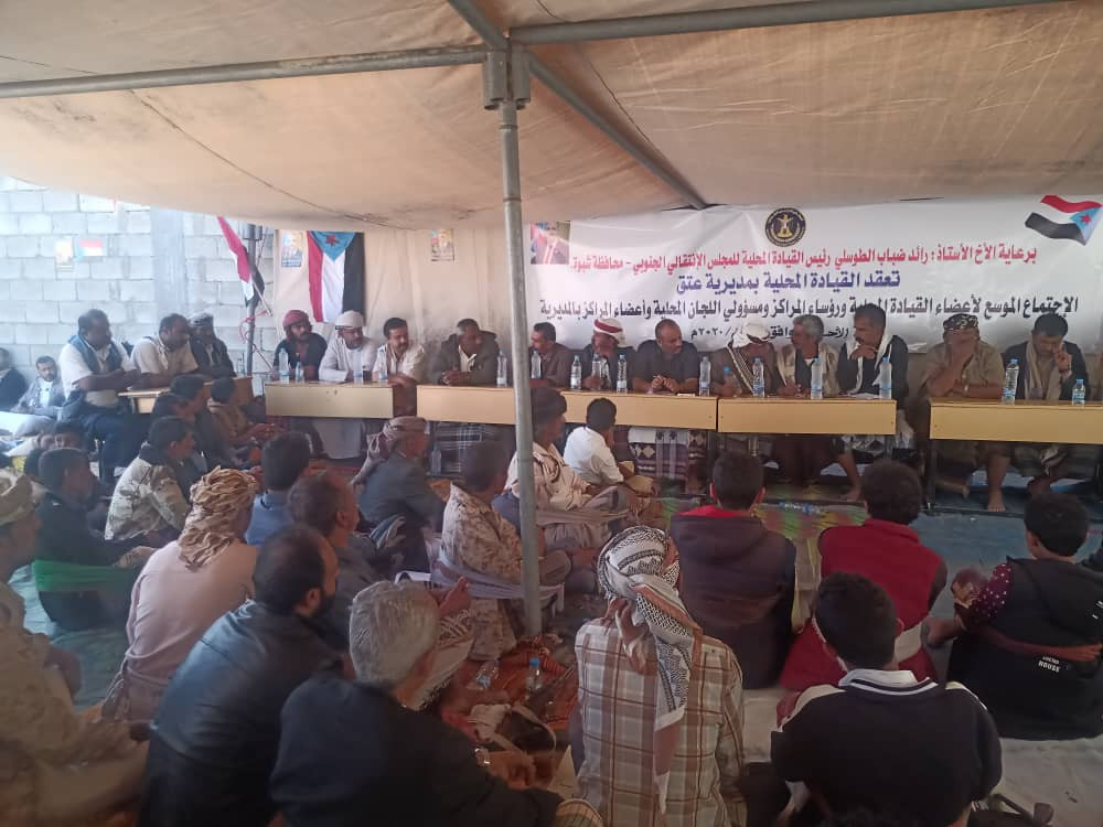 شبوة. قيادة إنتقالي عتق تعقد أجتماعا" موسعا" لأعضاء القيادة المحلية ورؤساء ومسؤولي اللجان وجميع الاعضاء بالمراكز .