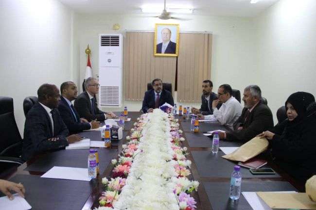 بحث وزير العدل القاضي بدر عبده أحمد العارضة بمكتبة في ديوان وزارة العدل صباح اليوم بالعاصمة المؤقتة عدن مع ممثل منظمة الأمم المتحدة للطفولة اليونسف السيد فيليب دوميل سُبل التعاون والتنسيق بين وزارة العدل ومنظمة «اليونسيف» في عدد من الجوانب الإنسانية والقانونية المتعلقة بشوؤن الطفولة في اليمن والاحداث.