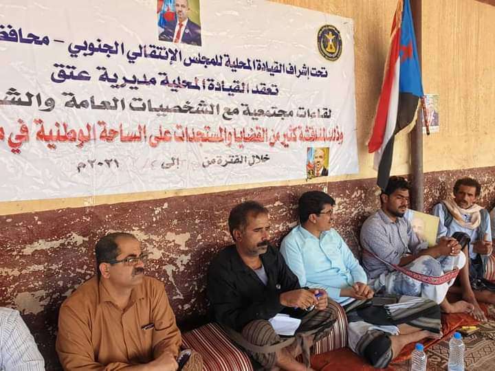 أنتقالي عتق بشبوة ينفذ لقاء مشتركا" بالشخصيات الإجتماعية والشبابية بمراكز الجابية والحاط ومخطط 611 بالمديرية