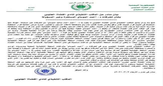 # صادر في عدن ــ عن المكتب التنفيذي لنادي القضاة الجنوبي.