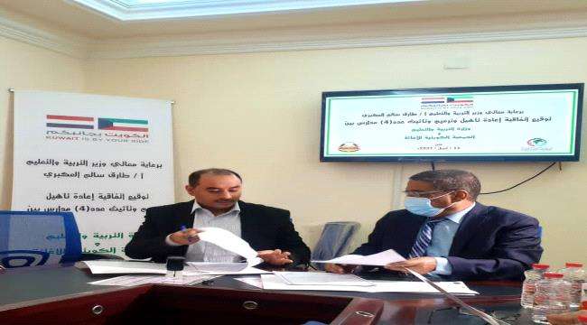 برعاية وزير التربية والتعليم أ. طارق سالم العكبري تم توقيع اتفاقية إعادة تأهيل وترميم وتأثيث عدد 4 مدارس في محافظتي لحج و الضالع الاحد الموافق ١١/ ٤/ ٢٠٢١م ،وبكلفة إجمالية تصل إلى أكثر من 1,6 مليون ريال سعودي وبتمويل ذاتي من الجمعية الكويتية للاغاثة.