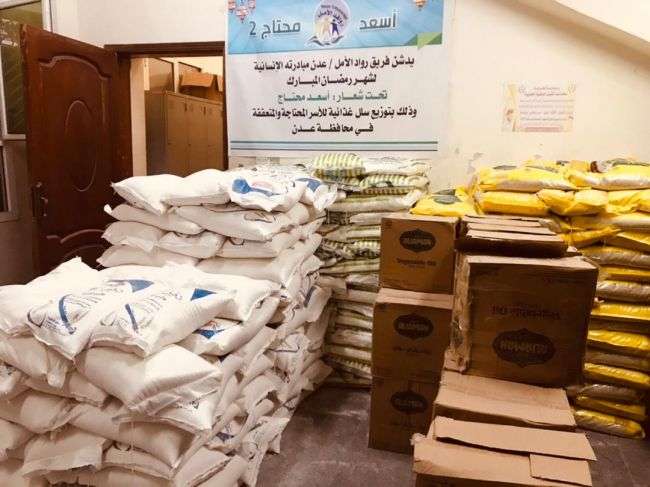 بدعم من الإتحاد العالمي للجاليات اليمنية ممثلا بالأمين العام الأستاذ زين المرقب وتحت شعار " أسعد محتاج " دشن فريق رواد الأمل في محافظة عدن يوم أمس المبادرة الرمضانية لتوزيع سلل غذائية للمعوزين والأسر المحتاجة .