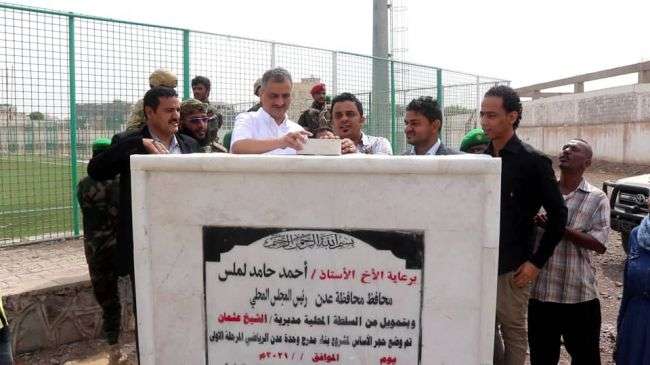 المحافظ لملس يضع حجر الأساس لمشروع إنشاء مدرجات إضافية لملعب نادي وحدة عدن ويتفقد أعمال تأهيل عدد من شوارع المنصورة