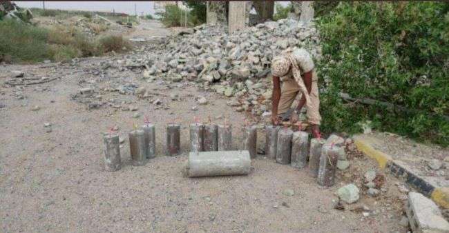 حيث قامت الفرق بانتزاعها الألغام خلال عملية مسح نفذتها اليوم وقدر عددها بنحو 60عبوة ناسفة .