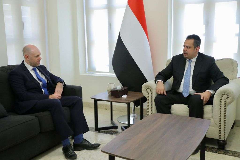 أكد رئيس الوزراء معين عبدالملك على أولوية دعم استكمال تنفيذ اتفاق الرياض والتزام الجميع بما تم التوافق عليه، ومواصلة الجهود لاستكمال استعادة الدولة وانهاء الانقلاب الحوثي المدعوم إيرانيا، وتخفيف معاناة المواطنين المعيشية والاقتصادية. جاء ذلك خلال لقاءه بالسفير البريطاني لدى بلادنا ريتشارد أوبنهايم، الخميس، لمناقشة تطورات الأوضاع والتحركات الأممية والدولية لإحلال السلام في اليمن، إضافة الى الجهود الجارية لاستكمال تنفيذ اتفاق الرياض بجميع جوانبه وعودة الحكومة الى العاصمة المؤقتة عدن، والدعم الدولي المطلوب لتعزيز قدرتها على مواجهة التحديات المختلفة، وفي مقدمتها الاقتصادية والخدمية. وأشار رئيس الوزراء إلى أن الحكومة كانت ومازالت متماسكة ومتمسكة بموقفها والالتزام بالسلام وفقا للمرجعيات الثلاث، وتعاملها الإيجابي مع المبعوث الاممي الجديد بما يلبي تطلعات الشعب اليمني في الامن والاستقرار، وفقاً لما ذكرته وكالة الانباء اليمنية (سبأ). وأوضح معين عبدالملك، أن الزخم الدولي للوصول الى التسوية السياسية عرقله تعنت الحوثيين ورفضهم لكل مبادرات السلام، وأن المهمة الأساسية للمبعوث الجديد والمجتمع الدولي هو الضغط على مليشيا الحوثي لايقاف مسار العنف والتصعيد، والالتزام بمسار السلام. وأضاف، أن الحكومة تعمل جاهدة للتخفيف من تداعيات تراجع سعر العملة الوطنية وضعف القيمة الشرائية، وضرورة دعم المجتمع الدولي لجهود الحكومة في مجال استقرار الاقتصاد والإصلاحات العامة. كما أشاد رئيس الوزراء، بالموقف البريطاني الثابت في دعم الشرعية على المستوى الثنائي وفي المحافل الأممية والدولية، وتأكيدها المستمر على رفض الانقلاب ودعم امن واستقرار اليمن. من جانبه أكد السفير البريطاني، دعم بلاده للحكومة في كافة المجالات، معربا عن تطلعه للتعاون الوثيق مع الحكومة لتعزيز مجالات التعاون المشتركة بين البلدين في مختلف الجوانب.
