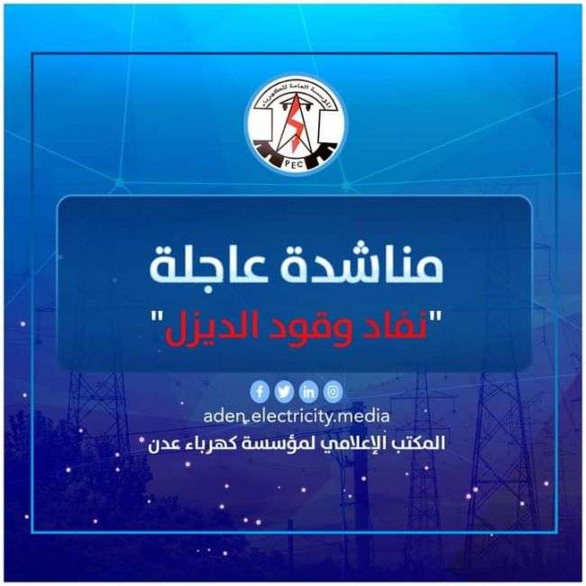 وأكدت قيادة مؤسسة كهرباء عدن على ضرورة توفير وقود مادة الديزل بكمية كافية حتى وصول الدفعة الرابعة من المنحة السعودية وذلك حفاظاً على إستمرار توليد المحطات.