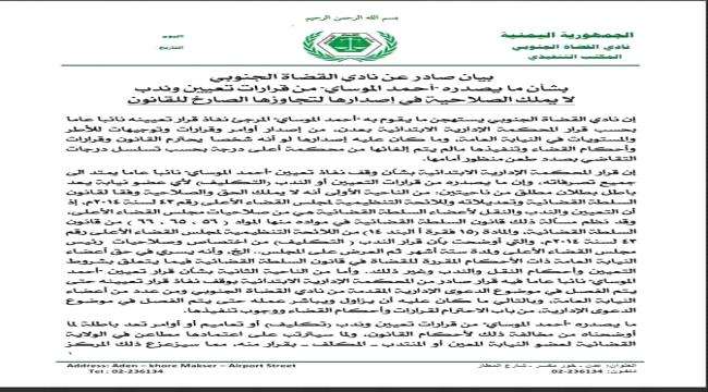 القضاة الجنوبي يصدر بيان بشأن بطلان قرارات الموساي