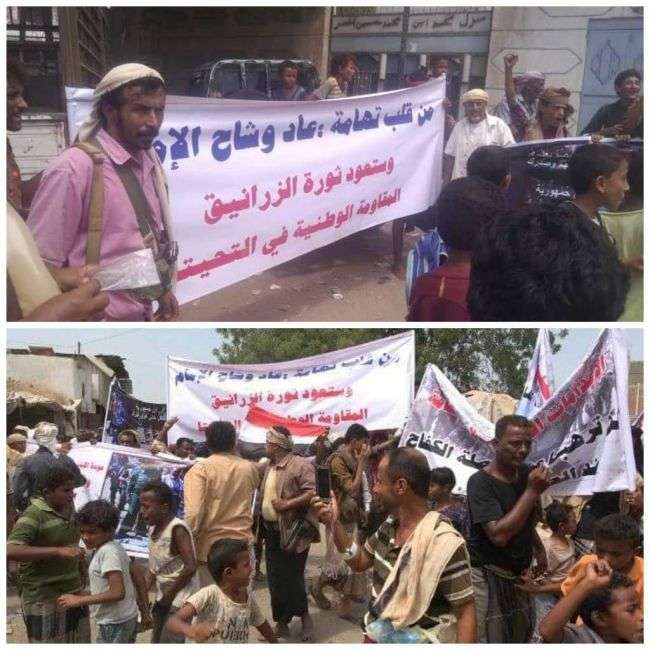 وأكد المتضامنون من أبناء المقاومة الوطنية في مديرية التحيتا بأن الجريمة البشعة التي قامت بها المليشيات الإرهابية تضاف إلى سلسلة الجرائم التي تمارسها المليشيات الكهنوتيه ضد أبناء تهامة.