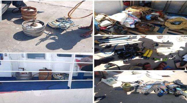 وعثر أفراد خفر السواحل، خلال تفتيش القارب القادم من مدينة الشحر في محافظة حضرموت، على أدوات ومعدات مخصصة للصيد ممنوعة، وأحالوا 25 شخصا على القارب إلى التحقيق.