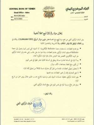 البنك المركزي يعلن مزاد رقم (3) لبيع العملة الأجنبية