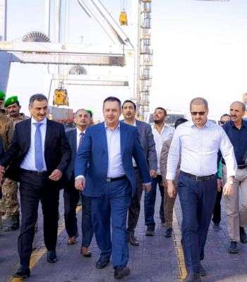 رئيس الوزراء الدكتور معين عبدالملك بمعية محافظ العاصمة عدن الأستاذ أحمد حامد لملس ميناء عدن صباح اليوم.
