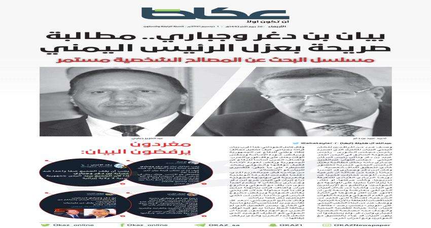 صحيفة سعودية : بيان بن دغر _جباري يمثل مطالبة صريحة بعزل الرئيس هادي لتحقيق أهداف شخصية