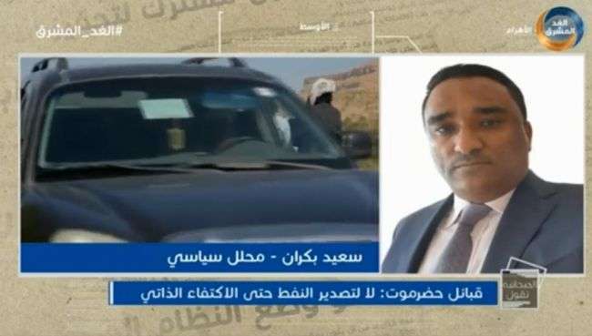 قال المحلل السياسي سعيد بكران أثناء مداخلته في برنامج الصحافة تقول على قناة الغد المشرق مع الإعلامي حسن الكندي ، إن وضع حضرموت يطرح أكثر من علامة سؤال وضع عجيب غريب يعني محافظة تصدر النفط والأسماك والمنتجات الزراعية وللأسف تغرق في أزمة الخدمات وأوضاع المواطنين كل يوم تزداد سوء .