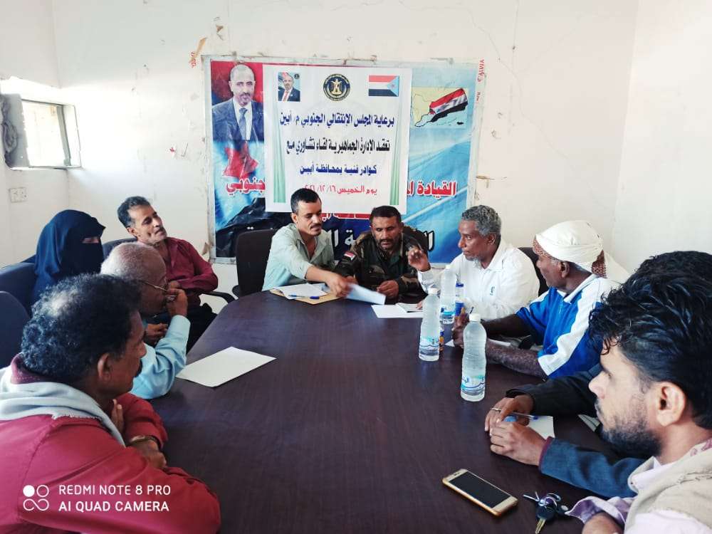 الجماهيرية في انتقالي أبين تعقد لقاء تشاوريا مع الكوادر الفنية بالمحافظة.