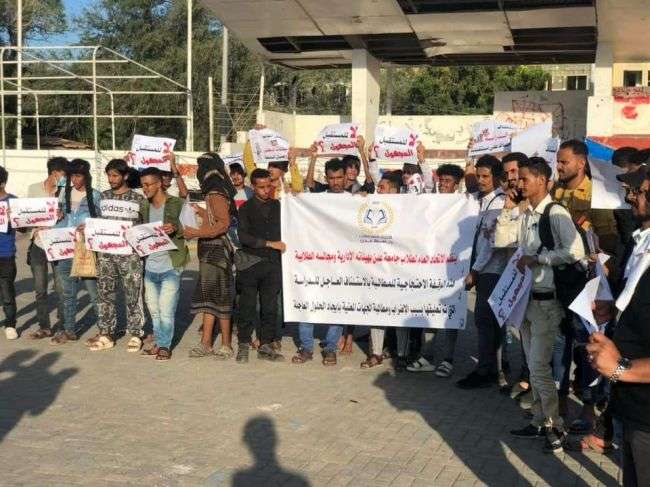 الاتحاد العام لطلاب جامعة عدن يقيم وقفة احتجاجية للمطالبة باستئناف الدراسة