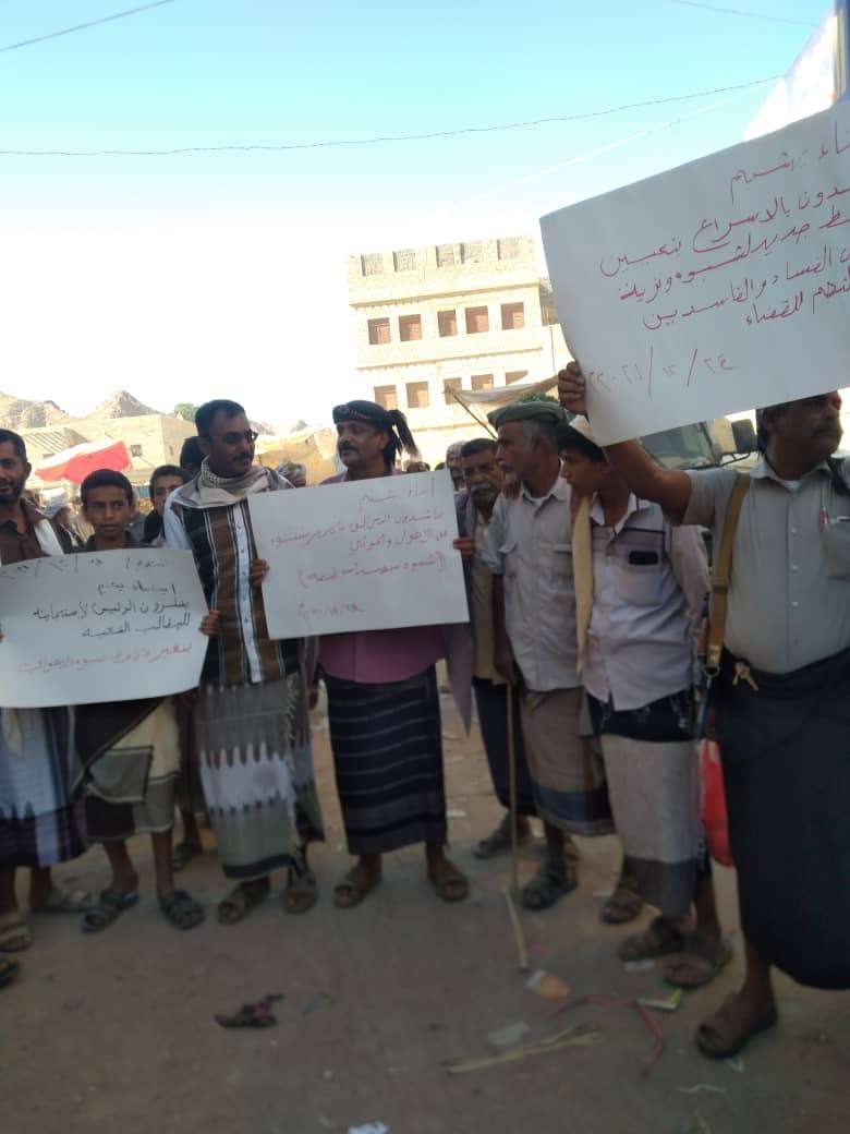 شبوة/وقفة لمواطنين بوادي يشبم شبوة تؤيد قرار اقالة بن عديو