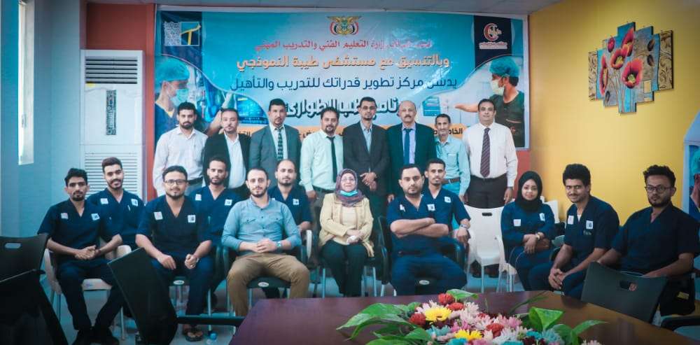 احتضن مسشتفى طيبة النموذجي صباح اليوم الاثنين 27 ديسمبر 2021 م فعالية تدشين برنامج طب الطورائ والذي ينفذه مركز تطوير قدراتك للتدريب والتأهيل بحضور عميد كلية الطب والعلوم الصحية الدكتور عبدالحكيم التميمي والدكتوره رجاء عبده عميدة كلية التمريض ومنسقة الدراسات العليا والدكتور عبدالرقيب محرز مدير الخدمات الطبية بوزرارة الصحة والاستاذ عمر الخضيري مدير المعاير والتوصيف المهني بوزارة التعليم الفني والتدريب المهني . التدشين تخلل عرض لتفاصيل برنامج طب الطورائ الذي يهدف لرفع مستوى وكفاءة اطباء العموم والممرضين من خريجي الكليات والمعاهد الصحية في مجال طب الطورائ . وخلال التدشين القى الدكتور عبدالحكيم التميمي كلمة أشاد فيها بالجهود التي تبذل لإقامة مثل هذه الدورات والدبلومات القصيرة التي تعزز وترفع من كفاءة الكوادر الطبية خاصة في مجال الطورائ الذي باتت عدن بجاحه له بشكل كبير داعياً الطلاب إلى بذل الجهد لتعزيز مداركهم و الخروج بحصيلة علمية و عملية . من جانبها الدكتورة رجاء عبدة ثمنت هذه الجهد والشراكة بين مركز تطوير ومستشفى طيبة لإقامة هذا البرنامج النوعي والذي جاء في ظل جهود لفتح الزمالة اليمنية العربية في الطورائ والذي سيكون له الاثر الكبير في رفد الوطن بكوادر ذو كفاءة عالية . وقد عبر الدكتور عمر بانافع مدير مستشفى طيبة النموذجي عن سعادته بإستضافة هذا البرنامج الذي يأتي في ظل خطة مستشفى طيبة لتقدم خدماتها العلمية والتدريبة الى جانب خدماتها الطبية والانسانية . الجدير ذكره أن مركز تطوير قدراتك للتدريب والتأهيل يولي الجانب الطبي اهتمام خاص ويقيم دوات متعدده تهدف في مجملها الى تعزيز كفاءة طلاب وخريجي الكليات الطبية في عدن ومحيطها .