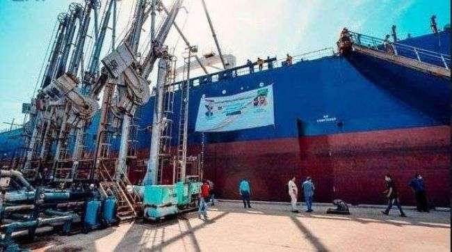 وأكد المصدر ذاته في تصريح صحفي لوسائل الإعلام المختلفة، أن سفينة محملة بنحو 60 ألف طن متري من مادة الديزل ضمن المنحة السعودية عبر البرنامج السعودي لتنمية وإعمار اليمن لقطاع للكهرباء في طريقها حاليا إلى ميناء الزيت في عدن، وأن موعد وصولها الخميس القادم، وسيعقبها بأيام وصول سفينة أخرى إلى ميناء الزيت محملة بحوالي 30 ألف طن متري من مادة المازوت.