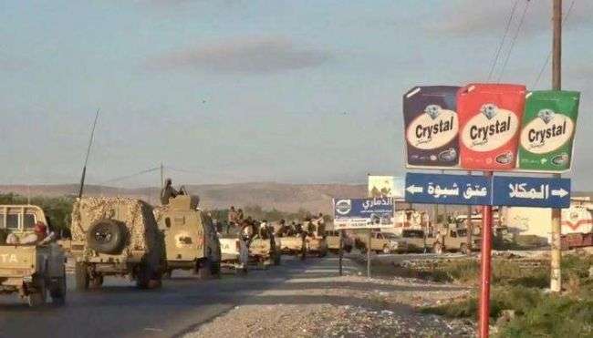 وانطلقت قوة عسكرية كبيرة من عدن في طريقها إلى محافظة شبوة .