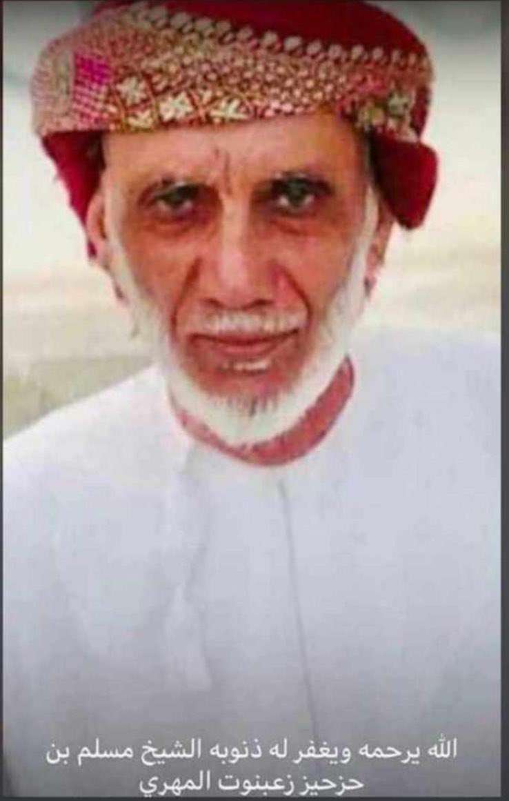 بعث الشيخ راجح سعيد باكريت برقية عزاء ومواساة بوفاة الشيخ/مسلم بن حزحيز زعبنوت الذي وافته المنية اليوم. نص التعزية.. بقلوب يعتصرها الألم ويملؤها الإيمان بقضاء الله وقدره تلقينا نبأ وفاة الشيخ مسلم بن حزحيز زعبنوت، وبهذا المصاب الجلل أتقدم بخالص العزاء وعظيم المؤاساة إلى أسرة الفقيد وقبيلة زعبنوت وكافة أبناء المهرة، وبرحيله تكون المهرة وظفار فقدتا أحد رجالاتها وركائزها. وتضرع باكريت إلى الله تعالى أن يتغمد الفقيد الراحل بواسع رحمته ويلهم أهله وذويه الصبر والسلوان وانا لله وانا إليه راجعون.