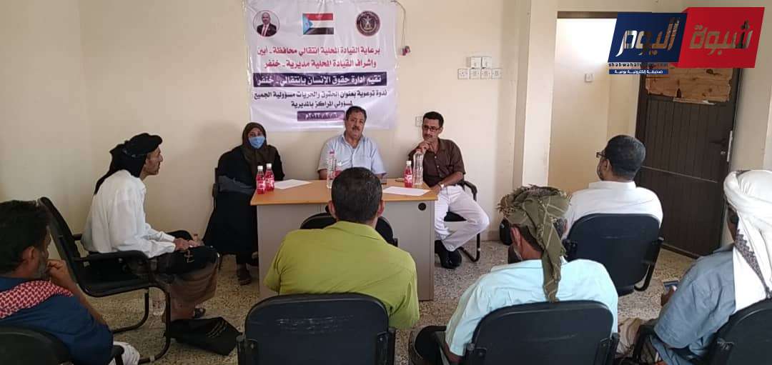 حقوقية انتقالي خنفر تقيم ندوة عن الحقوق والحريات لمسؤولي الرصد بالمديرية.