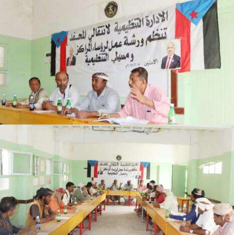 تنظيمية انتقالي المحفد بأبين تنظّم ورشة عمل لرؤساء اللجان ومسؤولي التنظيم بمراكز المديرية.