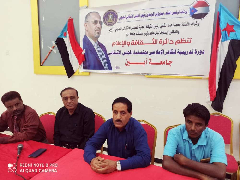 بحضور رئيس انتقالي أبين.. إدارة الثقافة والإعلام بمنسقية جامعة أبين تقيم دورة تدريبية في مجال التحرير والتصوير.