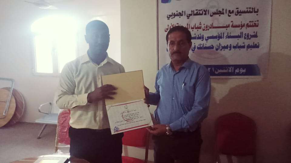 بحضور رئيس انتقالي أبين.. مؤسسة مبادرون شباب تختتم المرحلة الأولى لمشروع البناء المؤسسي.