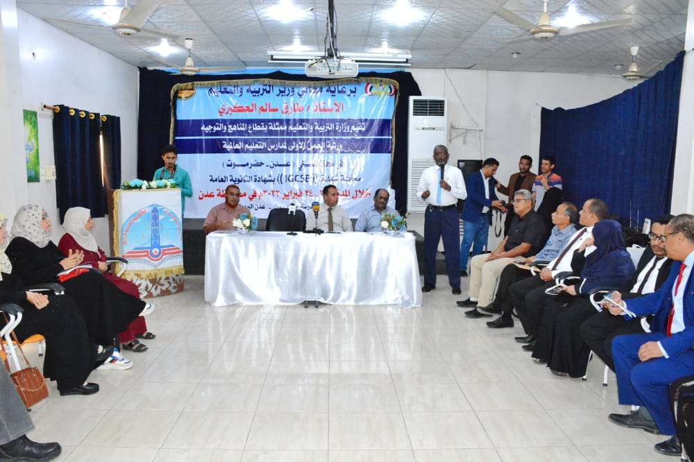 وزارة التربية والتعليم تقيم ورشة العمل الأولى لمدارس التعليم العالمية في محافظتي عدن وحضرموت.