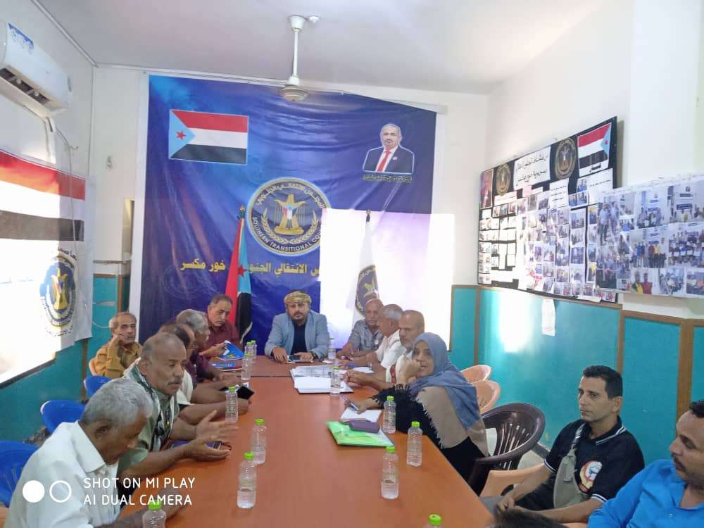 عقدت الهيئة التنفيذية للقيادة المحلية للمجلس الانتقالي الجنوبي في خورمكسر بالعاصمة عدن، اجتماعها الدوري لشهر فبراير "2022م" برئاسة الأستاذ بسام أمعبد، رئيس الهيئة بالمديرية. ووقف الاجتماع أمام جملة من القضايا والموضوعات المدرجة في جدول أعماله والمهام والتكليفات الموكلة للاعضاء في متابعة مواضيع التربية والتعليم، ومستوى الإلتزام برفع أعلام الجنوب وترديد النشيد الوطني في مدارس المديرية. واستعرض المجتمعون الجوانب التنظيمية والإدارية بالهيئة ومستوى الالتزام بحضور الاجتماعات واستكمال قوائم الاعضاء في باقي الإدارات التنفيذية بالهيئة. كما ناقش الاجتماع التقرير الخاص بنشاط وعمل إداراتي المرأة والطفل و الشؤون الاجتماعية خلال الفترة الماضية.